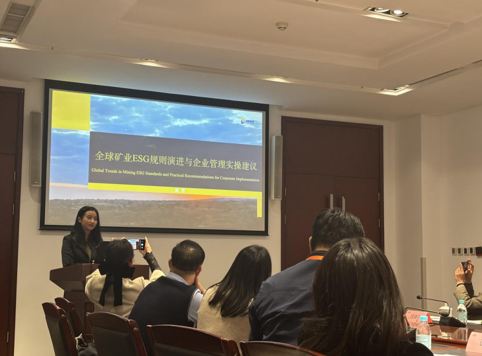在专题报告环节,琏德咨询业务经理 陈雪女士以《全球矿业ESG规则演进与企业管理实操建议》为题作专题发言。她从“为什么‘ESG规则’成了矿业绕不开的话题”切入,系统梳理了全球矿业ESG规则的发展趋势与核心特征,并结合琏德咨询多年的项目经验,从企业ESG治理体系构建、合规战略制定、供应链尽责管理以及持续改进机制等维度,提出了一系列具有实践价值的落地建议。