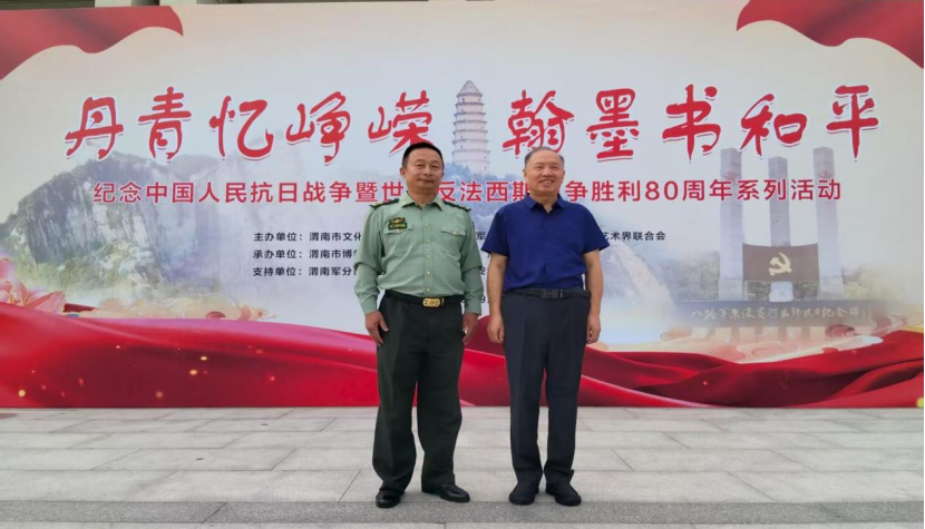 你们以强烈的使命担当,围绕“铭记历史,缅怀先烈,珍惜和平,开创未来”这一主题,以书画艺术为载体,弘扬伟大抗战精神,凝聚民族复兴力量。通过精心筹划,将书画作品展览和理论研讨有机结合,形成了多维度的活动方式,充分表达了广大书画艺术家和理论工作者爱党爱国爱人民的赤胆忠诚,可敬可学!望你们以这次活动为契机,把习近平主席提出的文化自信、理论自信、道路自信、制度自信落在实处,为实现中华民族伟大复兴的中国梦作出更大的贡献!