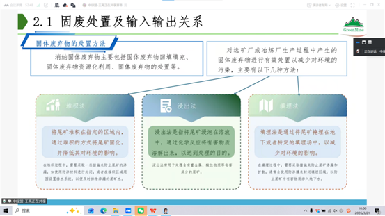 English2026年3月21日,中关村绿色矿山产业联盟(简称“中绿盟”)组织第三十二期绿色矿山科技特别专员活动,中绿盟副理事长兼秘书长王亮为90多名专员进行了资源开发与环境保护协调体系:固体废弃物处置与资源化利用平衡的知识培训,王亮秘书长从固废平衡基础概念、输入输出关系、关系模型、技术路径等方面进行展开,使参会人员对于固体废弃物处置与资源化利用平衡方面有了一定了解。