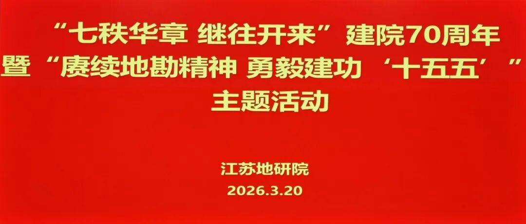 3月20日,江苏地研院开展“七秩华章 继往开来”建院70周年暨“赓续地勘精神 勇毅建功‘十五五’”主题活动,总局工会副主席孙红娥现场指导并作专题授课,院党委书记张谷春出席活动并讲话。