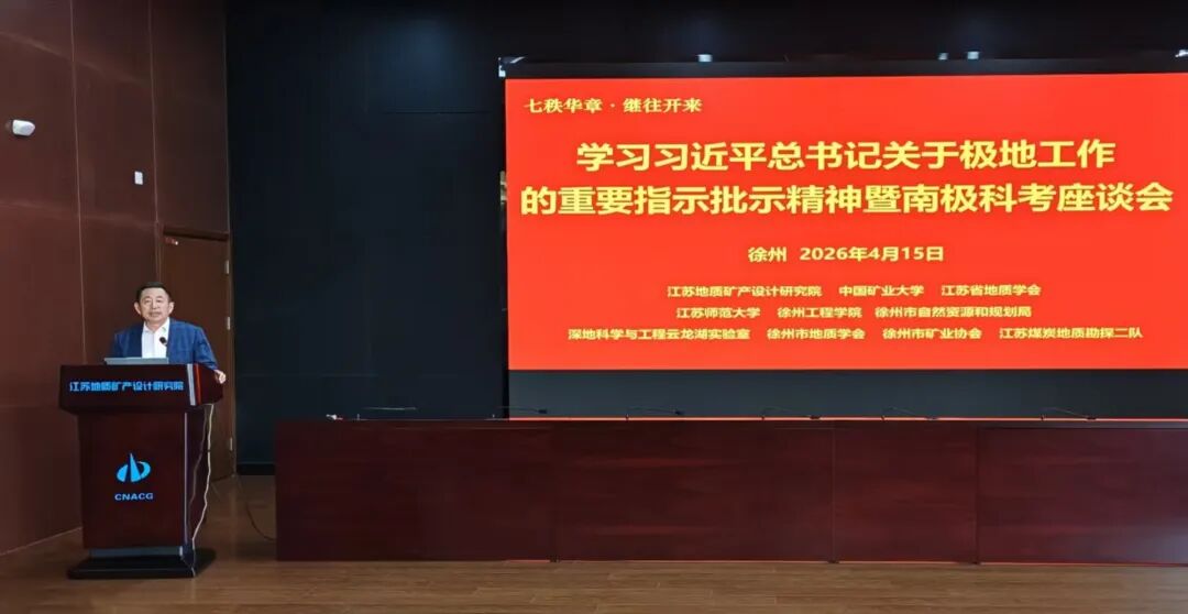 4月15日,江苏地研院召开专题座谈会,深入学习贯彻习近平总书记关于极地工作的重要指示批示精神,热烈欢迎毛礼鑫博士圆满完成中国第42次南极考察任务载誉归来。江苏省地质学会、中国矿业大学、江苏师范大学、徐州工程学院、深地科学与工程云龙湖实验室、徐州市矿业协会、徐州市地质学会、江苏煤炭地质二队特邀嘉宾,院领导班子成员,全体干部职工参加会议。