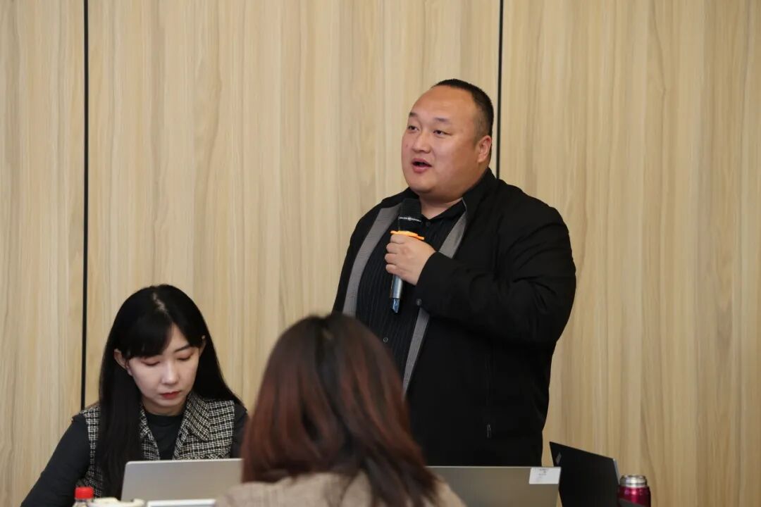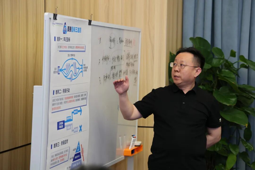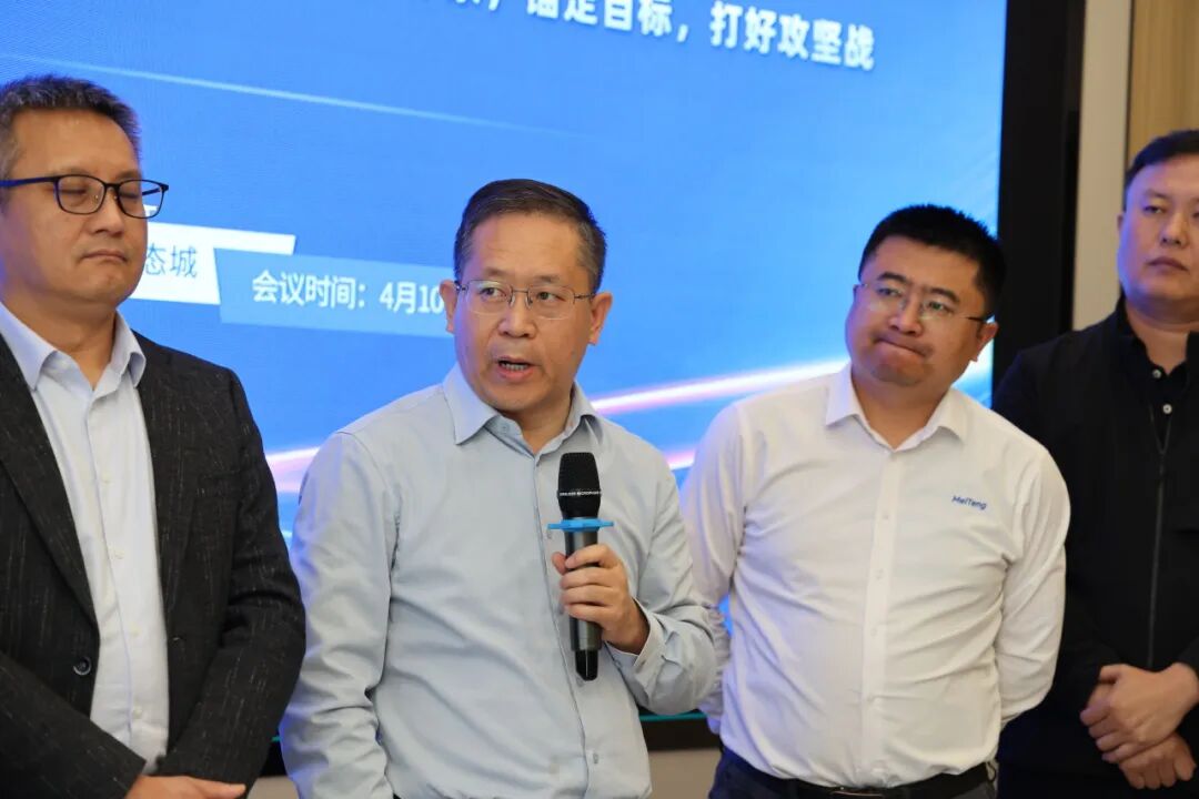 复盘总结 在回望中锚定前行坐标 4月10日下午,会议正式拉开帷幕。在季度工作回顾复盘环节,董事长李太友先生率先发言,为本次会议定下基调。 李总围绕板块运行情况、组织架构改革及“五要点”进行了系统复盘,并对二季度工作提出期望与方向。 李总指出,领导要敢于直面问题,为实现OKR不懈奋斗。在人才培养方面,要重点关注优秀与良好人才,脚踏实地,凝聚团队力量,真正做到促增长、保顺畅。各项工作要继续按一季度节奏推进,强化四体系建设、数字化升级、工具迭代与节拍建立,围绕“美腾目标三准则”,以不达目标不罢休的决心狠抓落实。他特别强调,要关注正确而重要的难点问题,基于公司十多年的积累与努力,作为董事长将致力于搭框架、拿订单、强团队、建体系,要求每个部门真正厘清自身正确而重要的事项。 总裁梁兴国先生复盘一季度经营情况,强调复盘要提炼方法、精准发力。针对二季度,他分析了风险挑战,明确目标路径、预算执行、智能团队强化及跨部门协同等重点工作,要求主动解决问题、杜绝“报喜不报忧”,并围绕团队认知、关键跟踪、高标准建设及成本管控作出部署,夯实高质量发展基础。 接下来,各板块负责人依次发言,围绕一季度经营数据、重点项目推进、团队建设等内容展开复盘,既晒出成果,也直面存在的问题与不足。在汇报中,大家不回避短板、不掩饰差距,深入剖析目标执行中的卡点与难点,为后续工作找准改进方向。