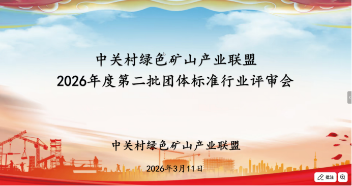 2026年3月11日,中绿盟 2026 年度第二批团体标准行业评审会以线上形式顺利召开。本次评审会聚焦矿业领域关键技术与产品规范,共有 5 项团体标准参与评审,来自行业内的多位知名专家及标准起草编制团队齐聚云端,为标准的科学性、规范性和实用性把关,助力矿业领域绿色化、智能化、标准化发展。