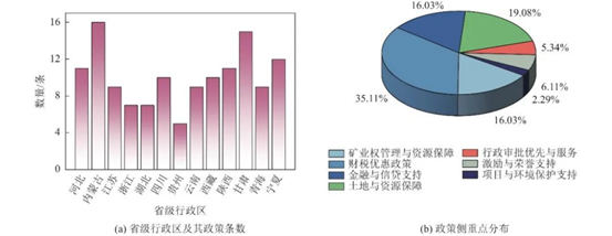 我国绿色矿山建设依次历经萌芽、试点、示范引领阶段后,现已步入全面推进阶段。国家及地方政府相继出台支持政策,以保障我国绿色矿山的全面建设。然而,目前仍存在部分问题制约我国绿色矿山的全面建设。聚焦绿色矿山政策框架及建设情况,通过系统收集政策文本、矿山名录等数据,考察政策设计特征与区域/矿种绿色矿山建设规律,提出了有关我国绿色矿山建设的问题和建议。结果表明:我国绿色矿山支持政策存在东西地区差异化特征,但均着重解决矿山所面临的资金和土地问题。同时,我国绿色矿山建设存在明显的区域和矿种差异,如山东(56.69%)和江苏(44.70%)等东部经济发达区域建成率较高,而西藏(5.66%)和甘肃(6.23%)等西部生态环境敏感地区建成率较低,与政策差异性表现出高度相关;矿种差异则表现在油气(29.87%)和煤炭(26.47%)等规模化行业建成率较高,而黑色金属(13.82%)和有色金属(18.61%)等分散性行业建成率较低。最后根据以上分析,指出我国目前绿色矿山建设主要面临着政策体系不完善、评估机制不科学、企业内生动力不足和企业经济效益不足以支撑绿色矿山建设等问题,并针对这些问题提出了构建健全的政策和标准体系、健全绿色矿山第三方评估机制、建立资源与环境协调体系以及绿色矿山管理体系等建议,助力我国绿色矿山建设的全面推进。