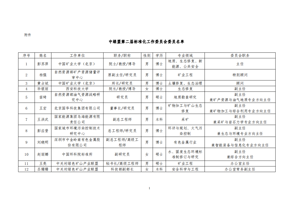 附件:中绿盟第二届标准化工作委员会委员名单