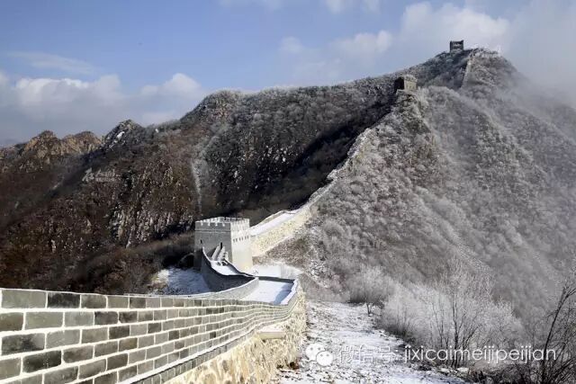 2015年2月,银装素裹的山体下,老许新修复的板厂峪长城越显壮丽多姿。