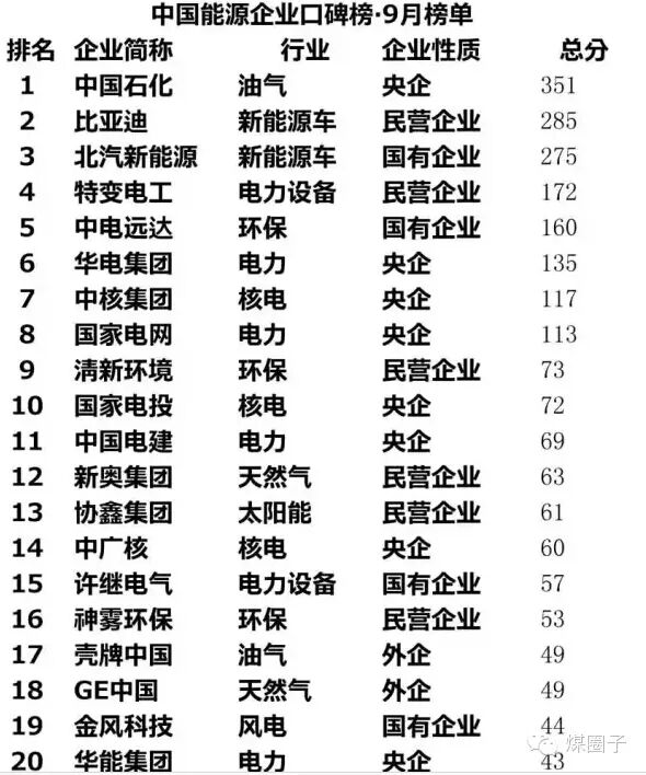 透过中国能源企业口碑榜9月榜单,可惜清晰地看到,央企、国企的口碑情况两极分化严重。