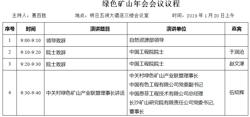 欢迎参加“绿色矿山年会”暨“2019年绿色矿山研讨会”,为了会议的顺利进行,请您认真阅读会议安排。