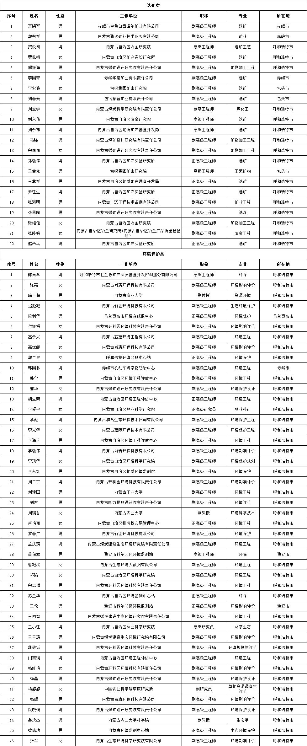 附件:内蒙古自治区绿色矿山评估专家库拟入库专家名单