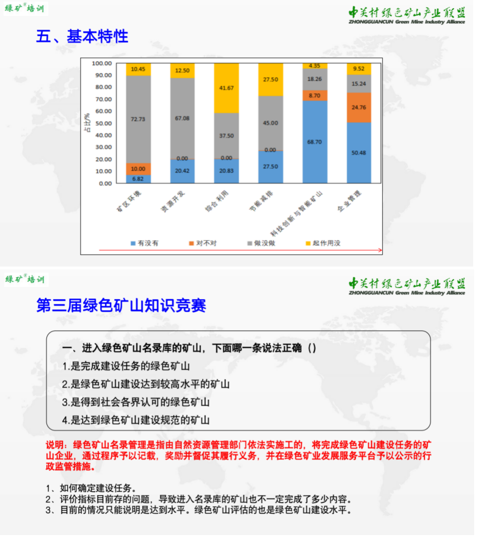 王秘书长从行业权威专家角度对绿色矿山评价指标、评估方法、第三方评估案例等方面逐一对出题思路题目答案做出了详细解释,尤其是对第三方评估工作做了精彩点评同时秘书长也为我们明年参加知识竞赛答题提供了思路通过试题解析,与会人员理清一些关键知识点,明确了一些基本概念内涵,进一步提升了绿色矿山认识水平