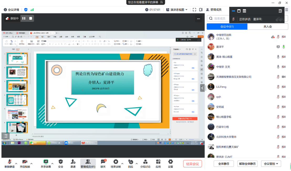 中关村绿色矿山产业联盟(简称中绿盟)绿色矿山科技特别专员第十一期(综合)活动采用线上会议形式于2023年12月23日圆满召开。科技特别专员70余人参与了活动。