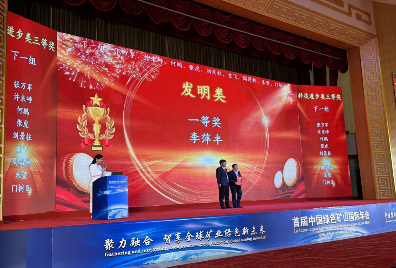 2024 年1月21日,第七届绿色矿山科学技术奖颁奖大会在北京顺利举行。第七届绿色矿山科学技术奖包含共评出334项,第七届绿色矿山科学技术奖共评出334项,其中基础研究类19项、科技进步奖 173项、发明类5项,重大工程类13项,矿业装备质量奖 10项(已于2023年7月份完场颁奖),青年科技奖 40项,十佳研究生论文奖 10项,科技突出贡献单位 24项,科技突出贡献个人40项。