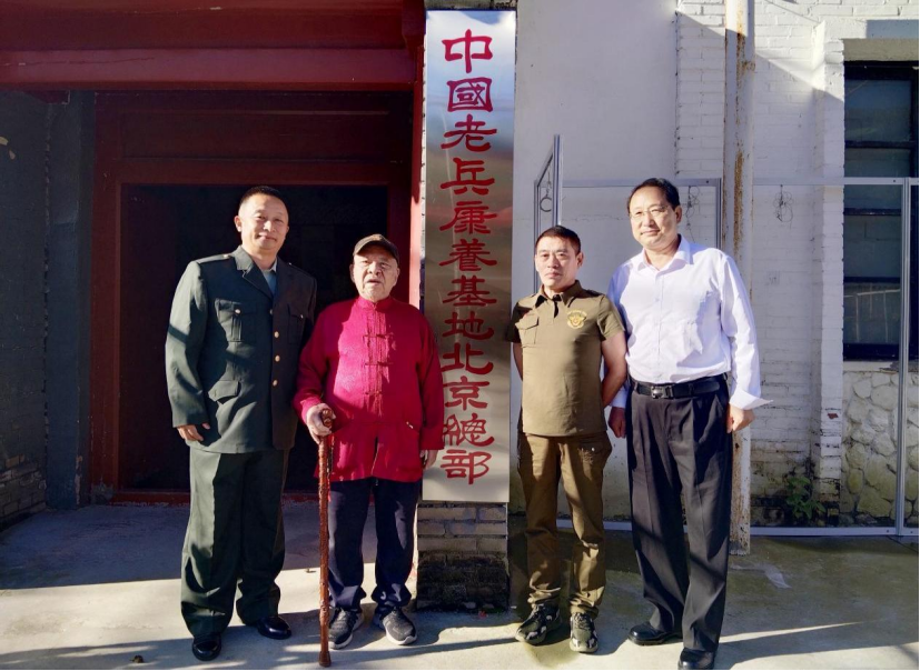 左一:中关村绿色矿山产业联盟陕西代表处秘书长刘航军 左二:朱德总司令的管家、参加过“八一南昌起义”的、当年的“红小鬼”117岁的红墙艺术家袁存建老前辈 右一:企业家孟宪伍 右二:中国老兵康养基地北京总部中医院(筹)负责人孙占江