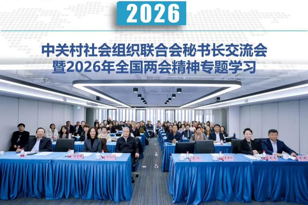 本次会议为中关村社会组织联合会秘书长交流暨联合党委2026年全国两会精神专题学习会,目标为「观趋势、谋大事、做实事」,助力建设京津冀国际科技创新中心。会议四项议程:依次为2026年全国两会精神专题报告、发布联合会2026年工作要点、社会组织代表主题分享、市科委领导指导性讲话。