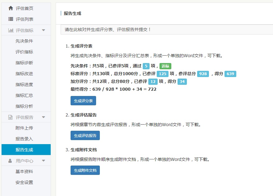 5.有选择地导出附件表、详细评分表、汇总表、自评估或第三方评估报告、核查报告、实施方案、持续改进方案或计划等。