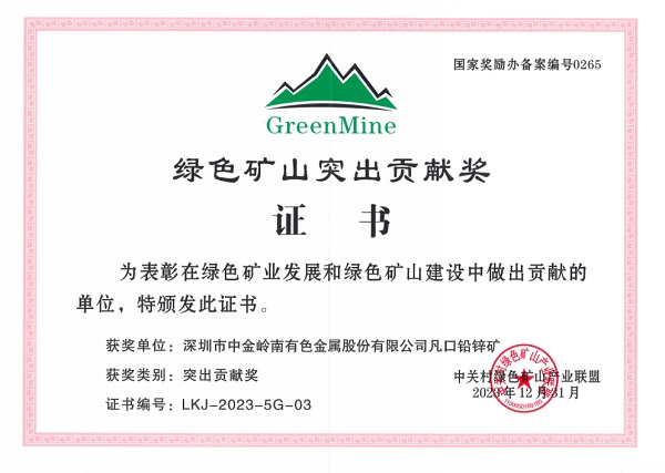 1月19日至21日,以“聚力融合,智享矿业绿色新未来”为主题的“首届中国绿色矿山国际年会”在北京召开。会上,广晟控股上市公司中金岭南所属凡口铅锌矿荣获2023年度“绿色矿山突出贡献奖”,其申报的智能矿山子项目《数智质控关键技术研究与应用》荣获“2023年绿色矿山科技进步奖一等奖”。